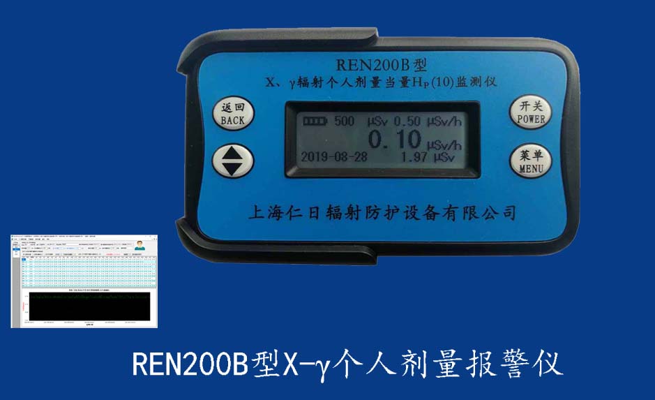 REN210型X、γ、中子個(gè)人輻射報(bào)警儀內(nèi)置SiPM和鋰玻璃晶體組成中子探測器儀器,采用反照率方式探測中子射線,同時(shí)也能探測X、γ射線。因此它可同事監(jiān)檢測X、γ、中子三種射線。能顯示工作場所的劑量當(dāng)量率和累積劑量,更換電池時(shí),日期及累積數(shù)據(jù)能永久保存。可選配RenRiPersonal個(gè)人劑量管理軟件,該軟件可存儲多個(gè)人的歷史數(shù)據(jù),能記錄日累積、月累積、年累積、輻照時(shí)長、計(jì)算平均劑量率、扣除或不扣除本底輻射,且以文字和圖譜的方式展現(xiàn)數(shù)據(jù)。廣泛應(yīng)用于環(huán)保、化工、水泥、煤礦、土木工程、石油、醫(yī)院、疾控、進(jìn)出口商檢、核電、加速器、機(jī)場、中子源庫和其他安檢、邊境控制海關(guān)檢測等領(lǐng)域中的工作人員進(jìn)行個(gè)人安全防護(hù)